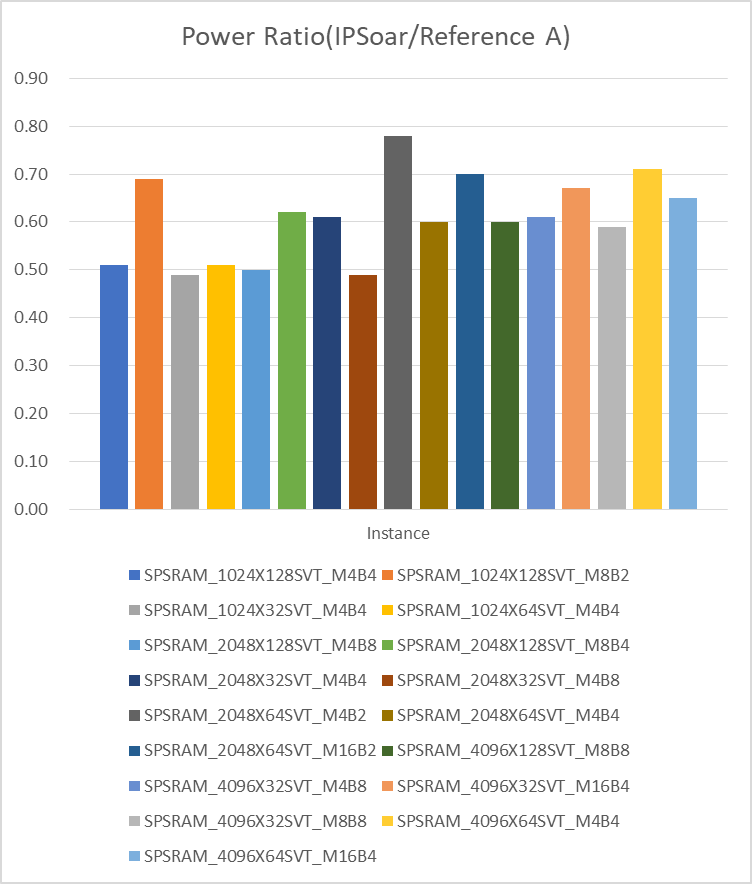 IPSOAR memory compiler通过独有的低功耗设计方案,静态漏电流同比业界降低30~50%;同时支持三种低功耗模式(Nap,Retention,Power down),满足客户对不同低功耗模式下的需求。